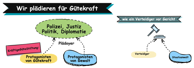 Die KräftigeGüteStiftung plädiert dafür, dass Polizei, Justiz, Politik und Diplomatie öfter gütekräftig vorgehen. Entscheiden müssen aber die jeweiligen Amtsträger:
